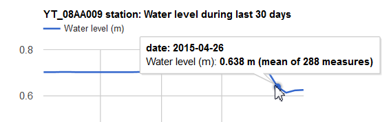 This page shows various options to display time series data (water level and discharge) measured by hydrometric stations using Google JavaScript APIs for charts.